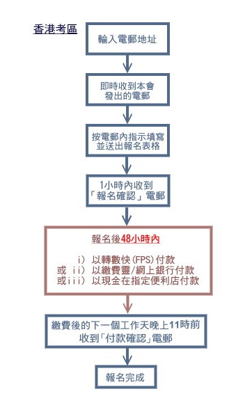 *如未能在指定時間內繳付考試費的考生,報名將被取消。