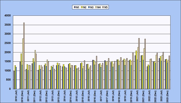 N1至N5報考人數 (香港及澳門地區)